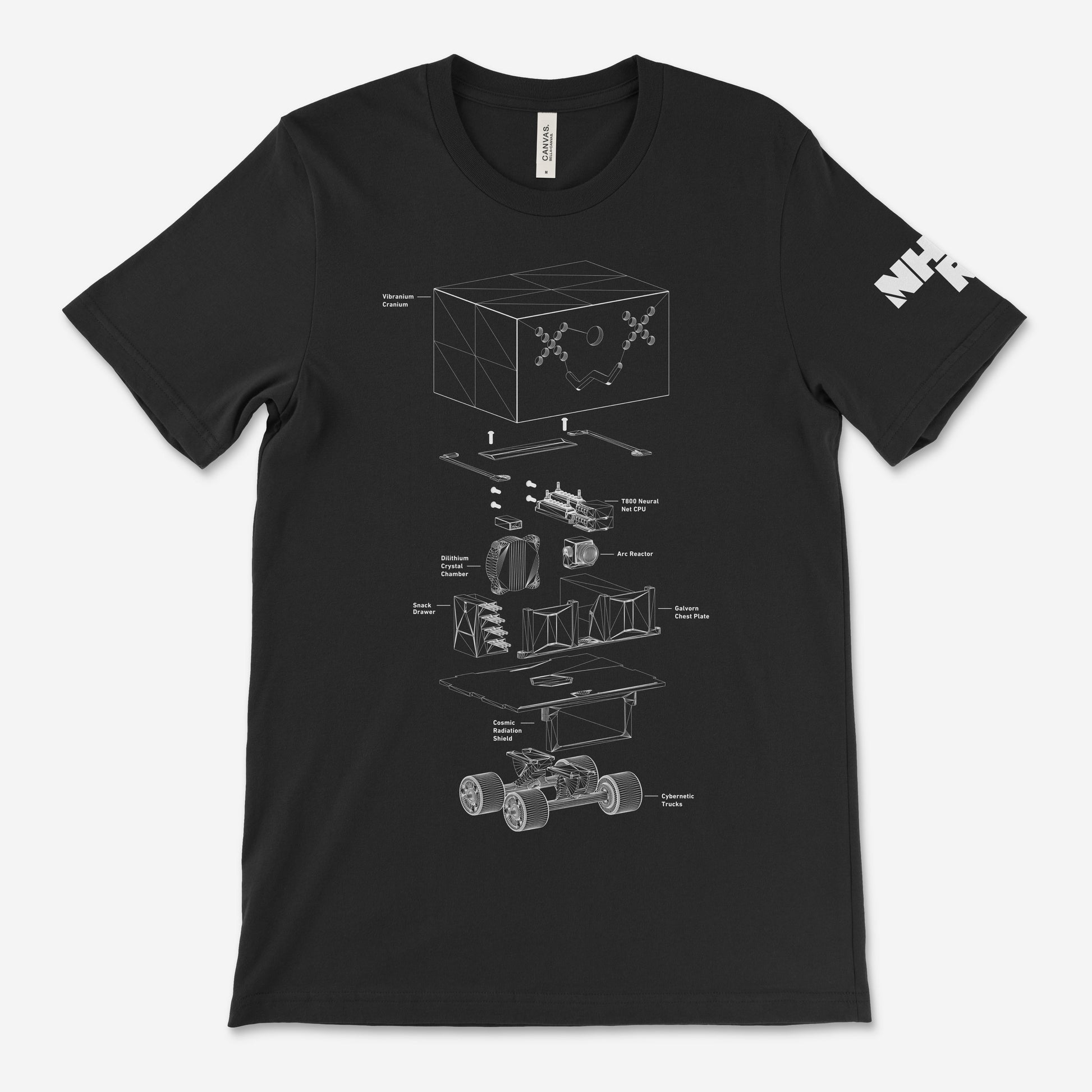 Showcase what our bots are made of with the Deconstructed Brett Shirt, featuring Brett’s own blueprint design on a black short-sleeve tee.